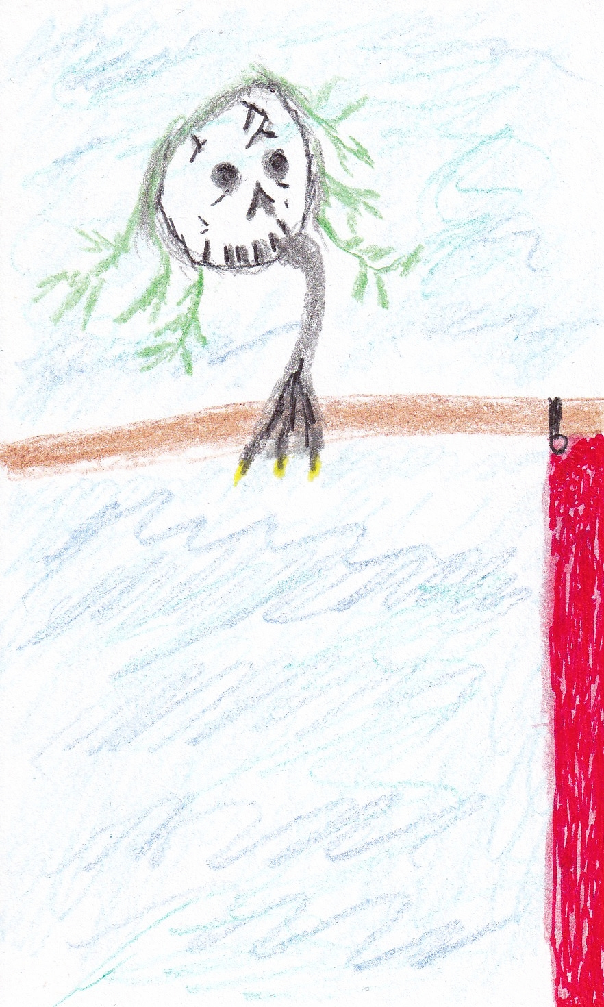 Above us—above the mast soared a large bird. It had a sharp pink face, long black wings, and a thick white breast. It was resting on the wind currents that swirled and sampled the coast. The bird rose slowly with one gust and glided downward with another.